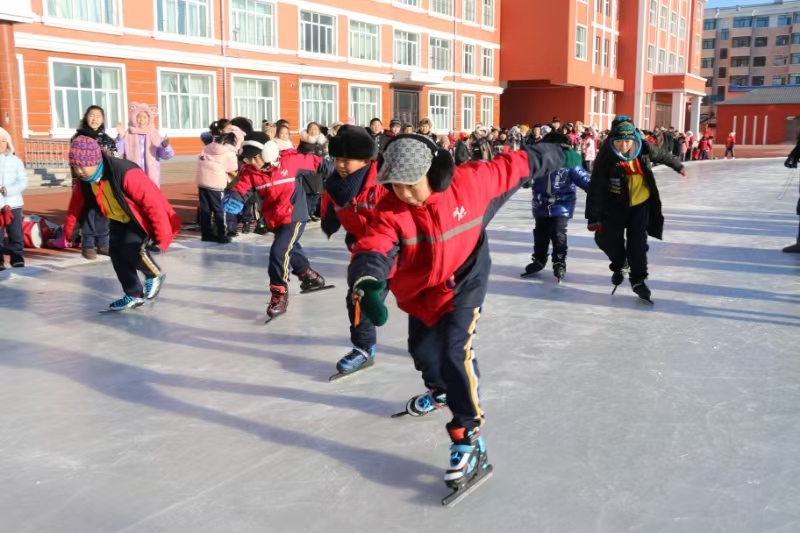 学校自2004年浇灌冰场以来,始终如一抓好冰上基地建设,校内冰场占地约240平方米。自冰场建设以来,学校积极开展各项冬季冰雪活动。