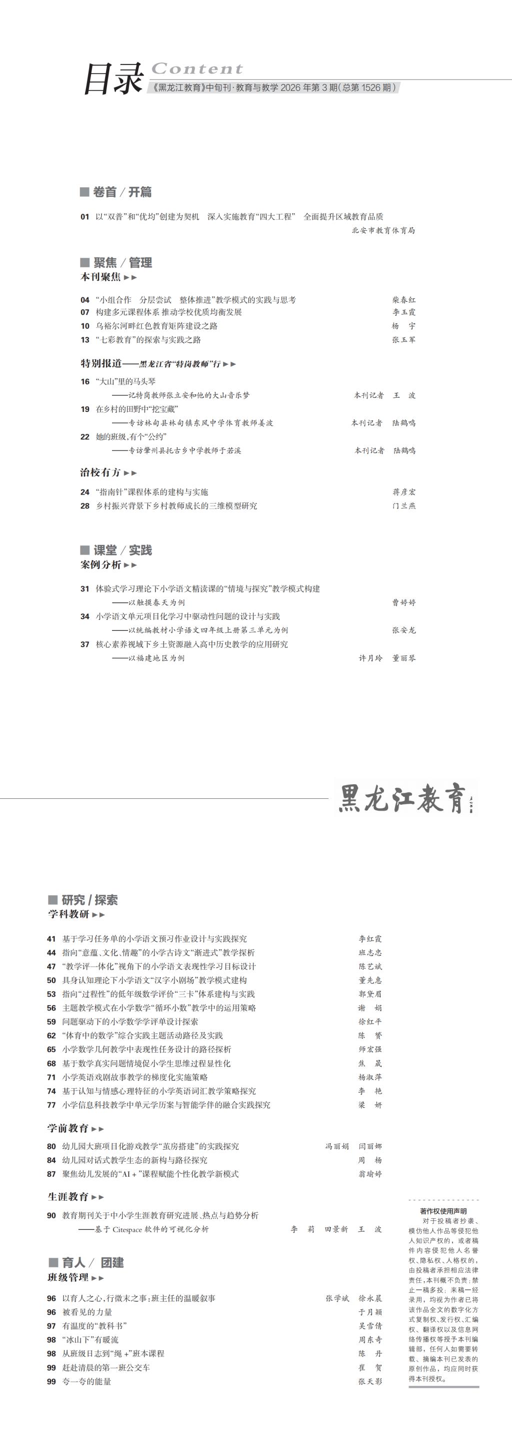 《黑龙江教育(教育与教学)》2026年第三期目录