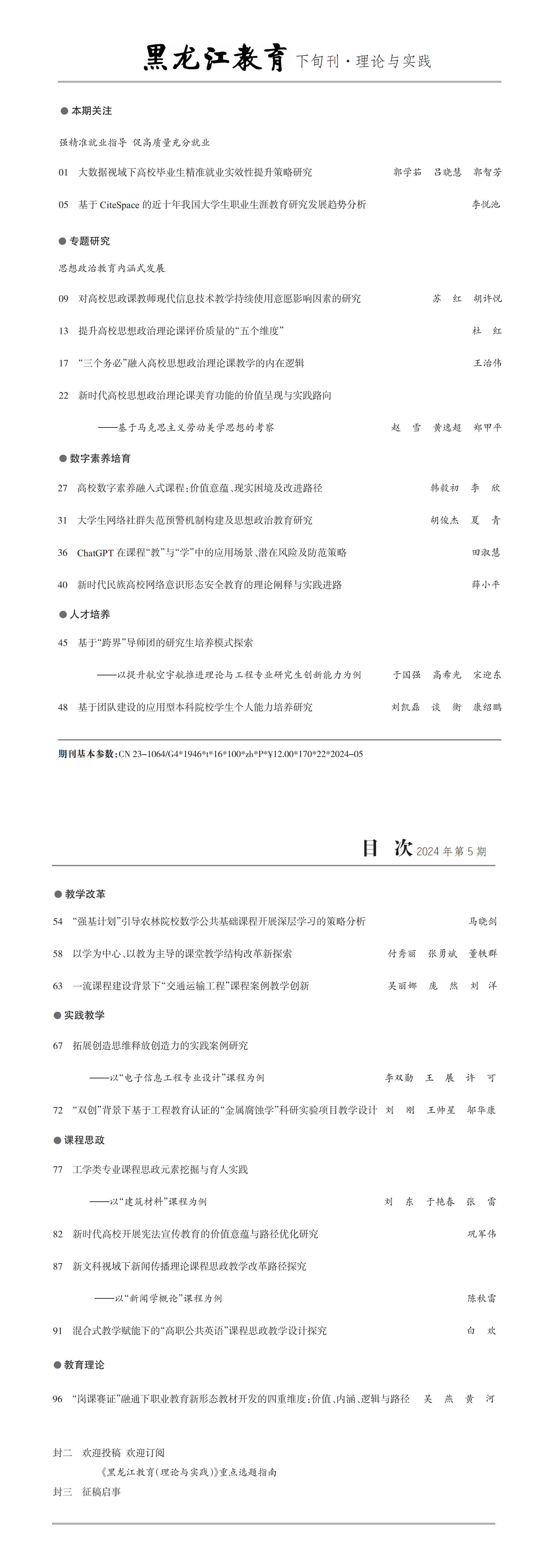 《黑龙江教育(理论与实践)》2024年第五期目录