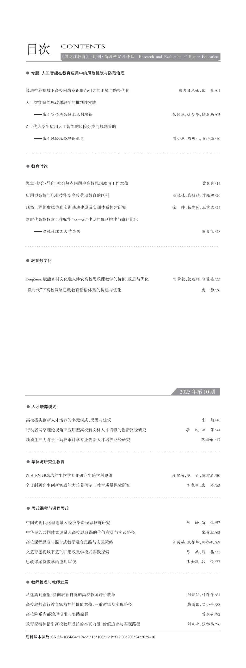 《黑龙江教育(高教研究与评估)》2025年第十期目录