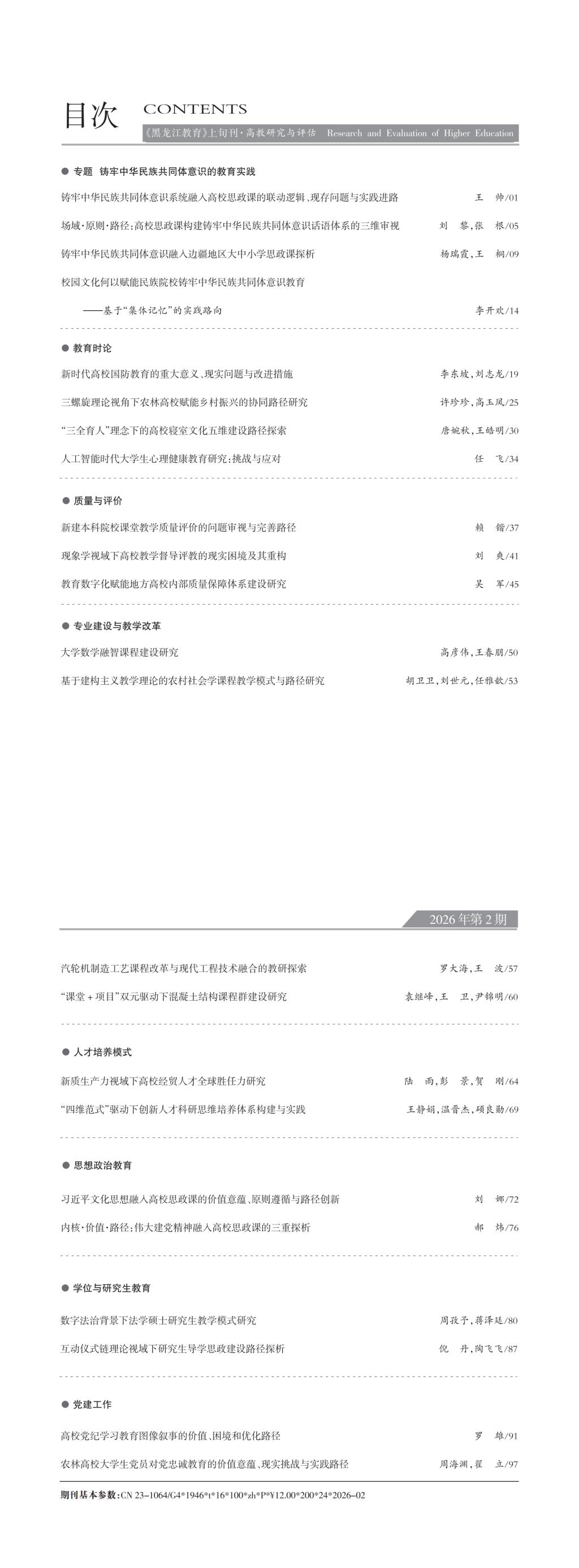 《黑龙江教育(高教研究与评估)》2026年第二期目录