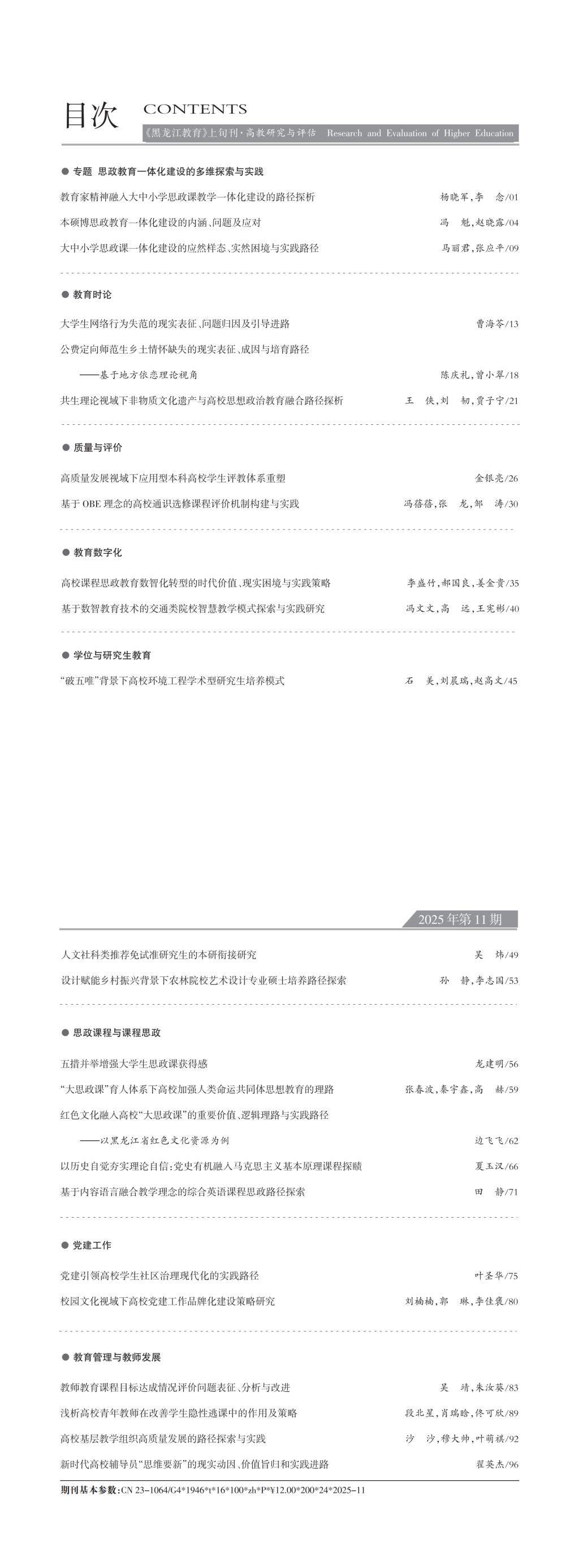 《黑龙江教育(高教研究与评估)》2025年第十一期目录