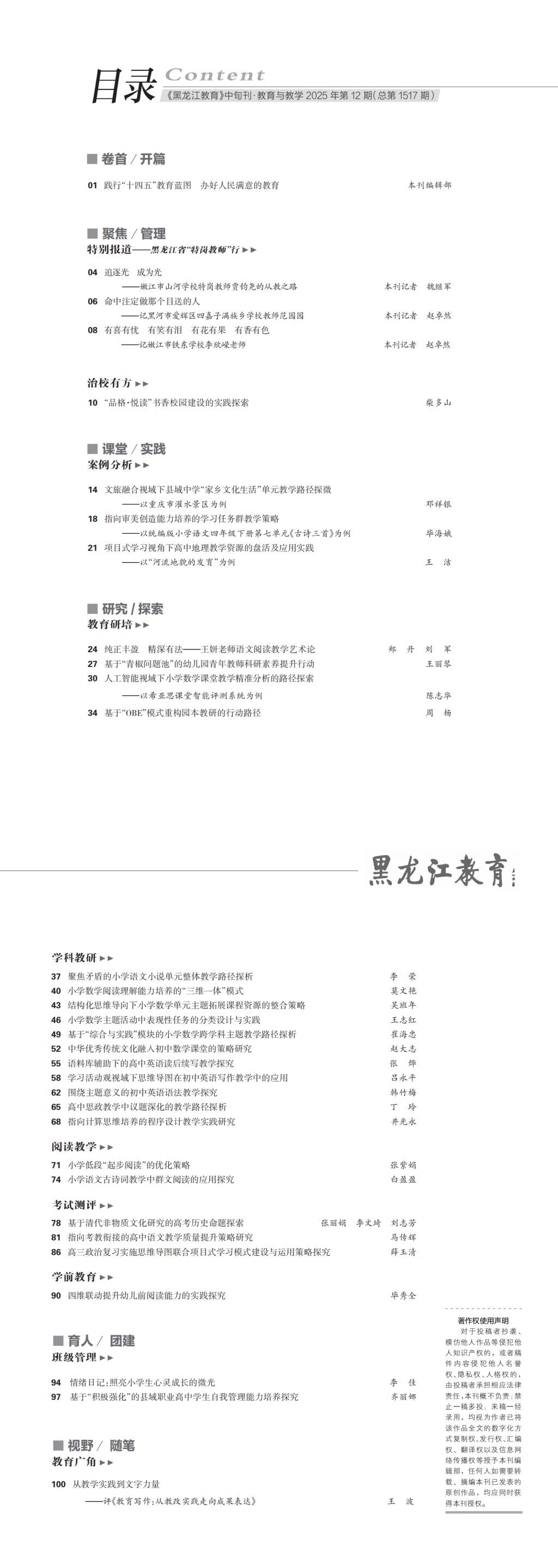 《黑龙江教育(教育与教学)》2025年第十二期目录