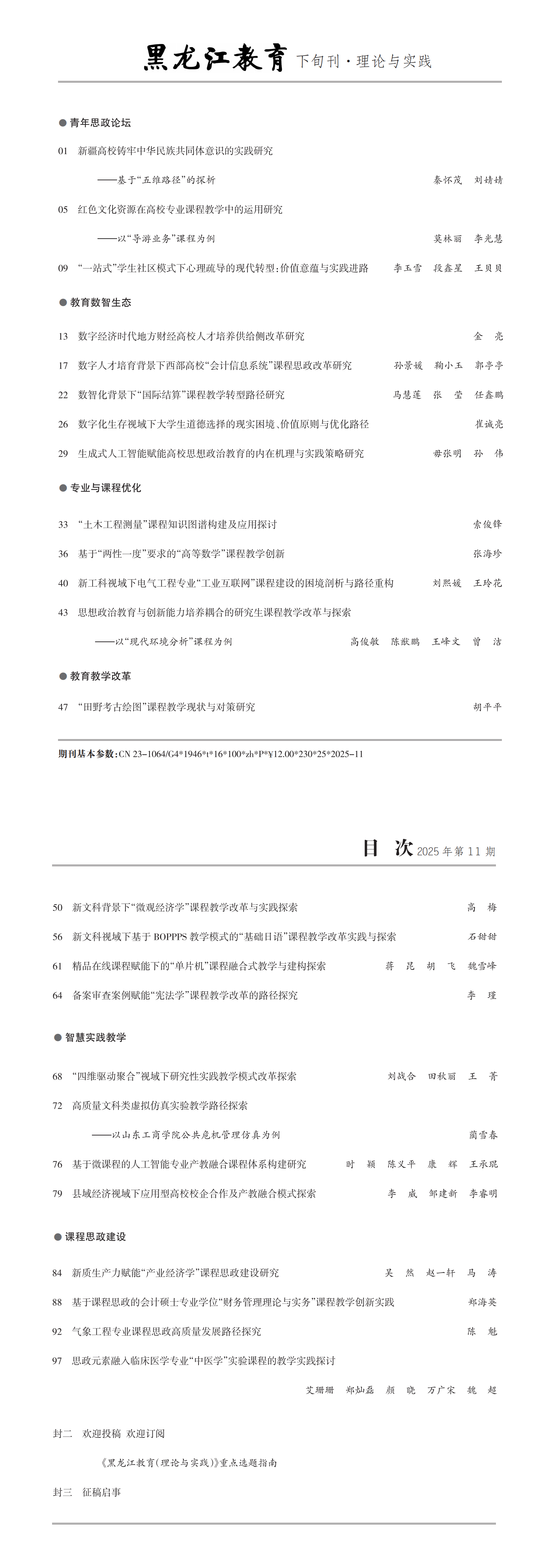 《黑龙江教育(理论与实践)》2025年第十一期目录